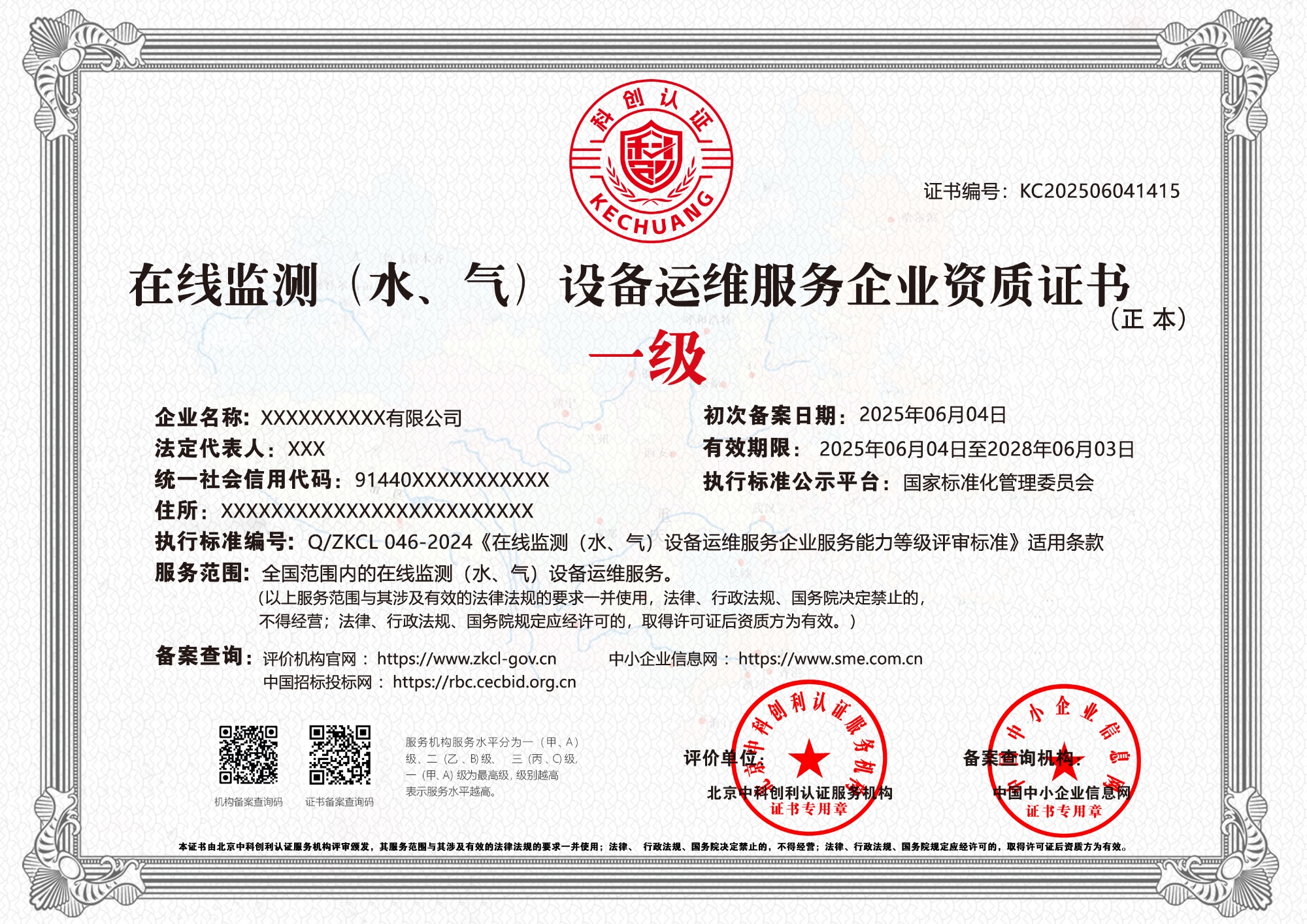 在线监测(水、气)设备运维服务企业资质证书