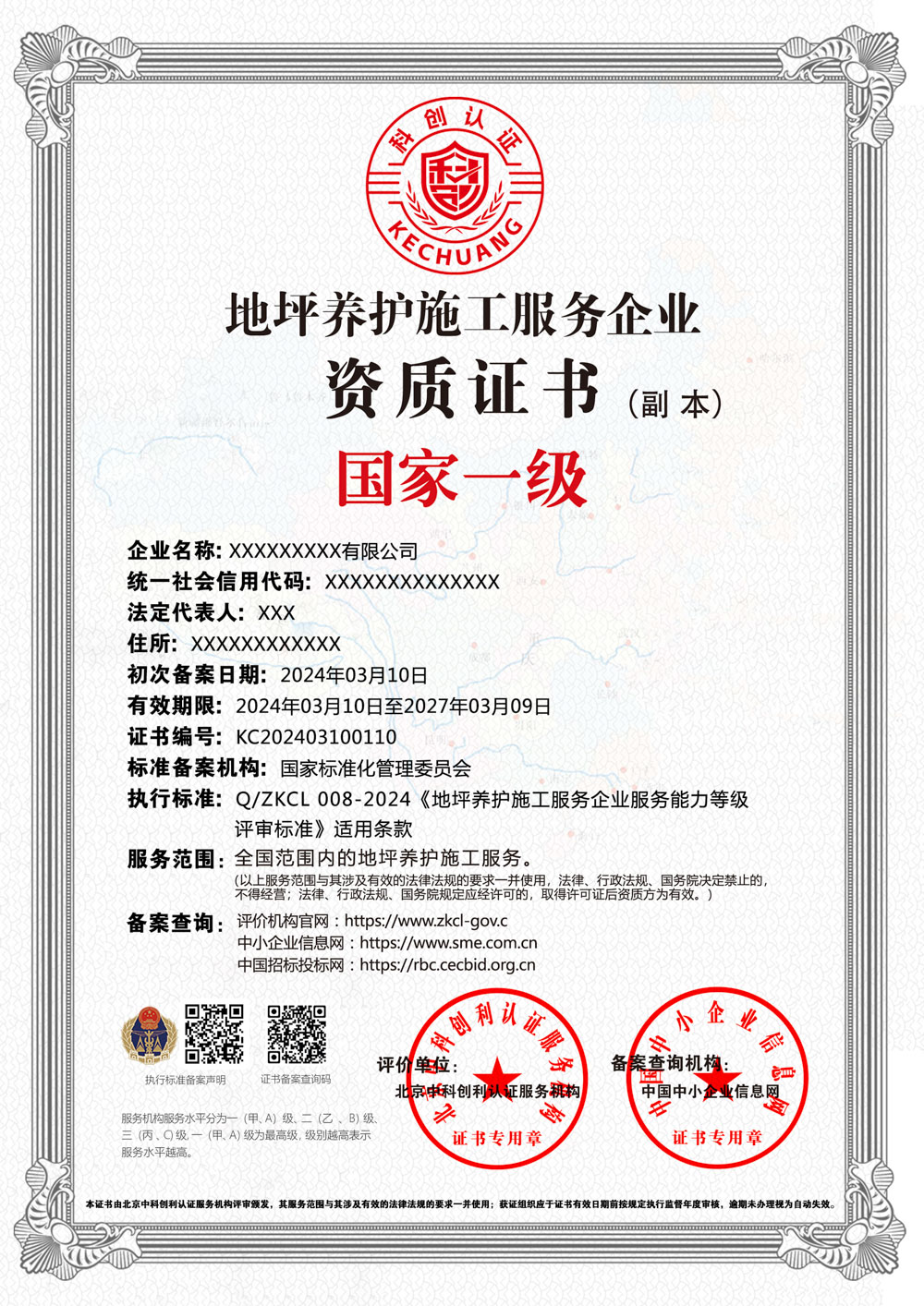 地坪养护施工服务企业资质证书