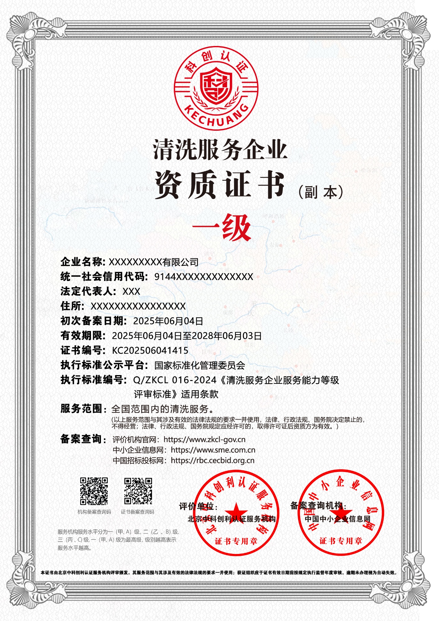 清洗服务企业资质证书